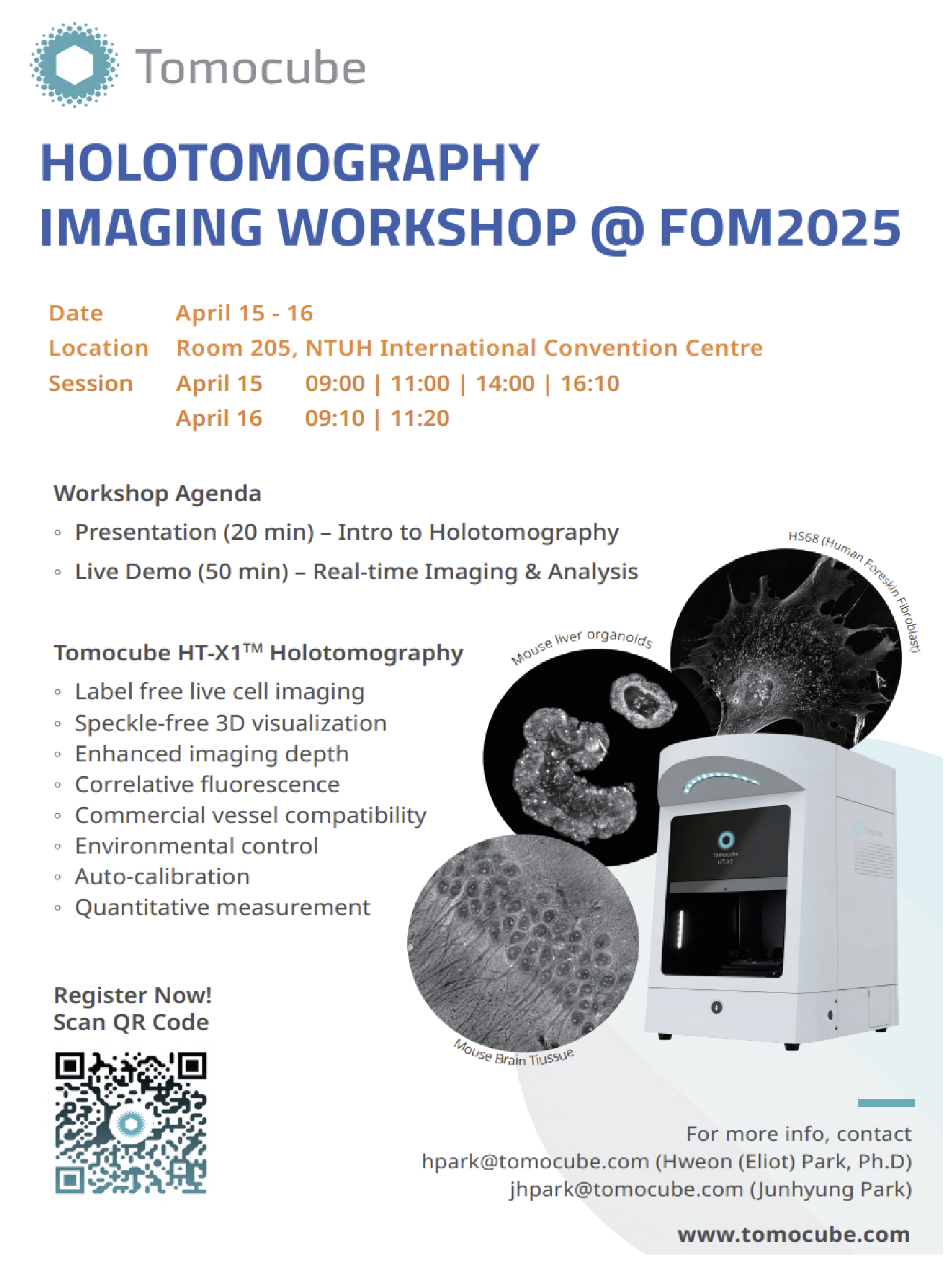 Tomocube (展出 XT-X1 TomoHolography 非侵入式, 無須螢光標記的組織與活細胞 3D/4D 斷層掃描全息影像系統 )