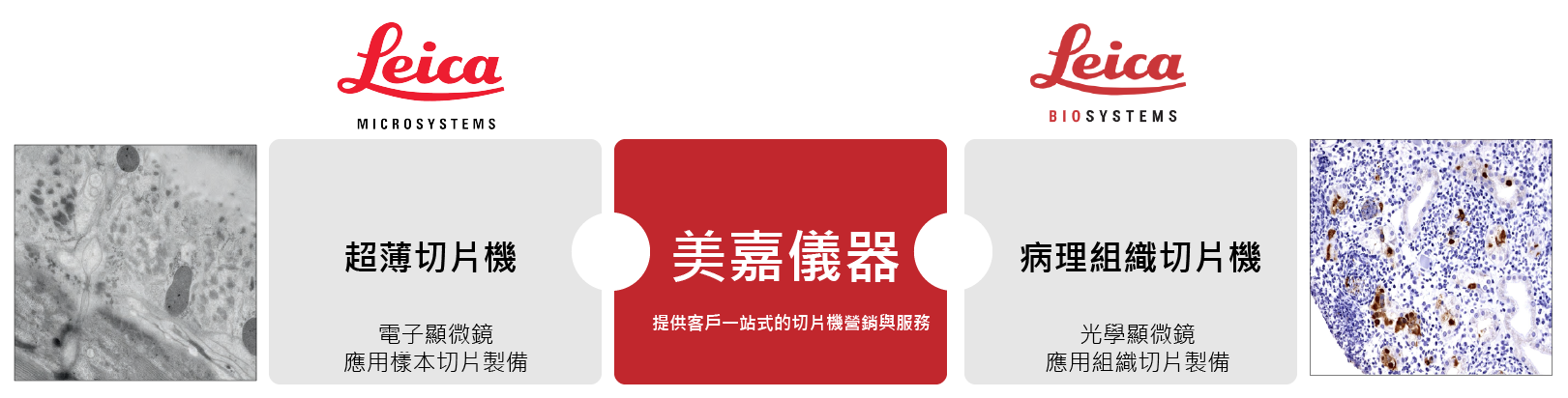我們整合 LEICA 所有的切片機 ( 超薄切片機 / LMS, 與 病理組織切片機 / LBS ), 提供最專業與最卓越的整合服務與營銷方案 ! 這是一個全台唯一的服務供應商, 縱橫切片機應用的極致, 從電顯到光學顯微鏡的鏡檢應用, 讓客戶可以一站式的選擇需要的最佳切片機, 無論是電顯製片應用, 或者是病理組織切片機, 客戶不僅可以擁有性能最高的切片機, 最高的切片品質, 也可擁有最專業的服務品質 ....................
