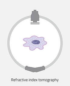 活細胞3-D成像是一種干涉測量技術, 其可測量透明樣品(例如生物細胞) 的 3D 折射率 (RI)分佈。