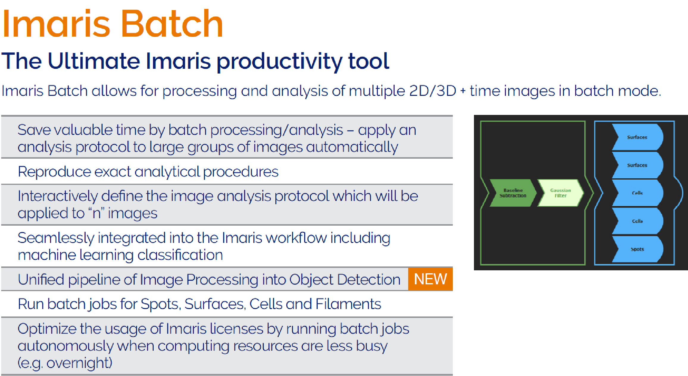 | Imaris Batch - Utilise saved protocols for batch analysis | ✓ | ||||