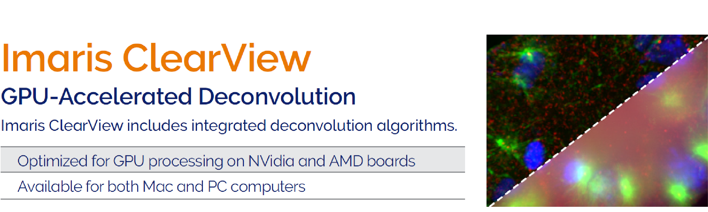 - ClearView-GPU™ is anchored in the Imaris analysis workflow (