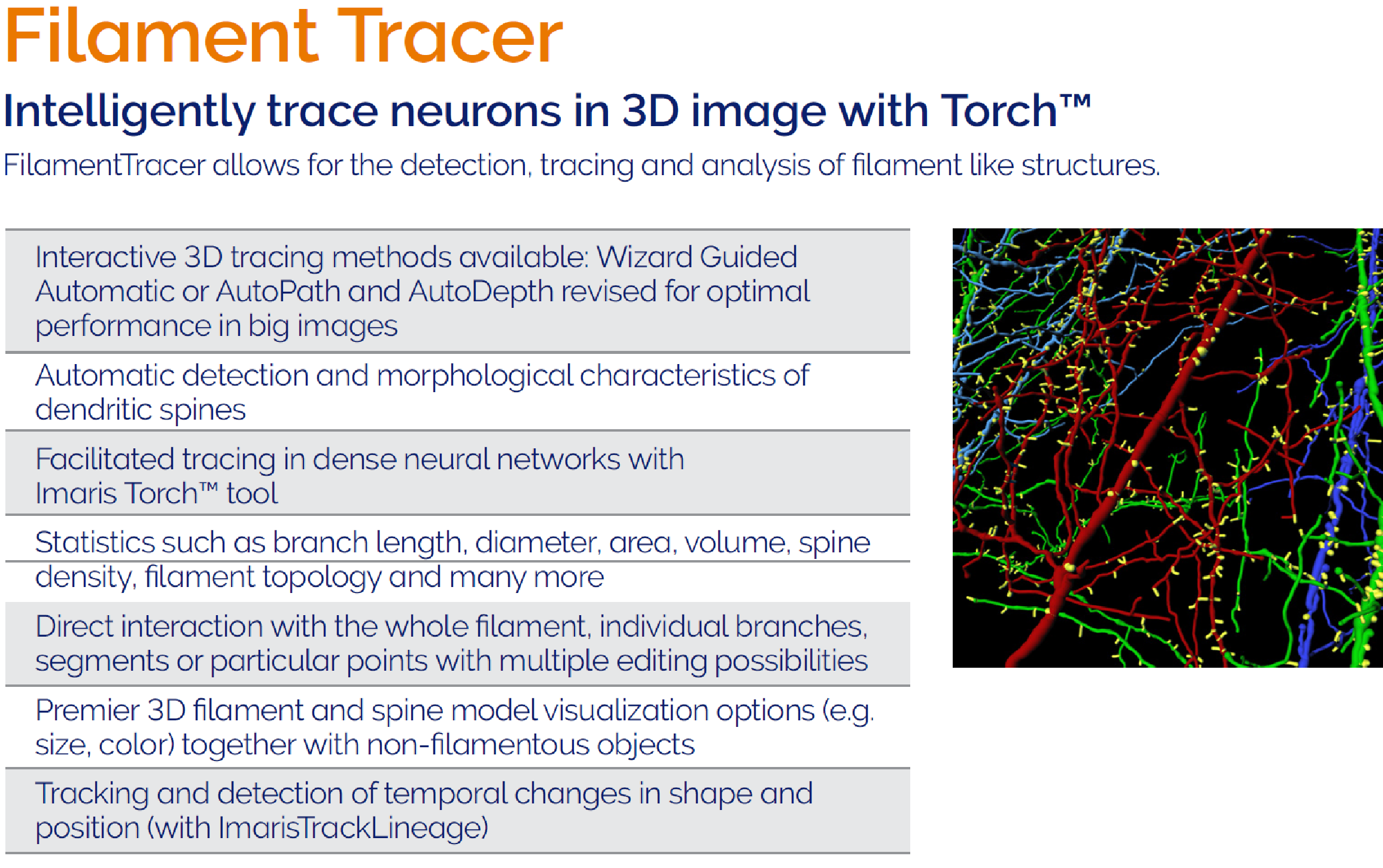 | Imaris Filament Tracer - Trace filamentous structures, neurons, vessels, detect spines | ✓ | ✓ | |||
