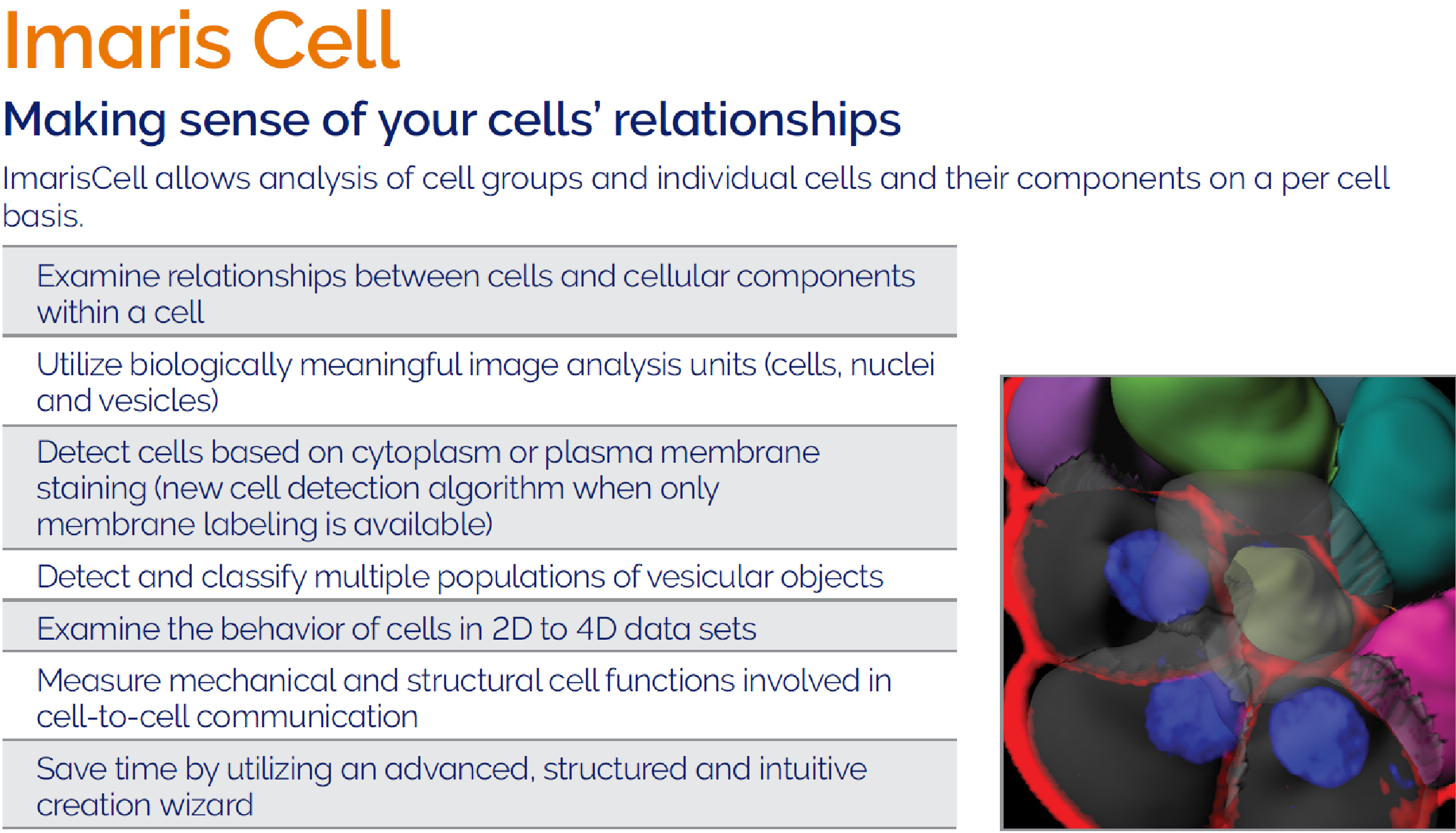 | Imaris Cell - Segment and analyze cells and their compartments | ✓ | ✓ | |||