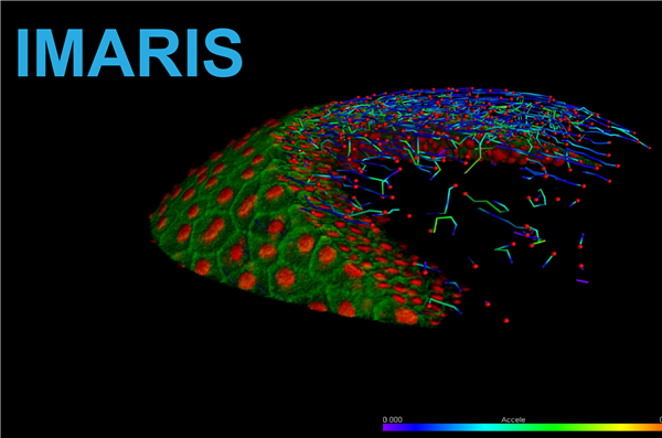 . 基於物體的大小,強度,形狀,速度,運動方向,運動曲度等多種參數實現自動追蹤 . 運動軌跡以路徑,運動方向,"Dragon Tails" 等多種方式展示, 排序及分類 與 ImarisXT 模組結合實現更強大的特異性追蹤, 自動跟蹤 3D+時間序列的運動物體