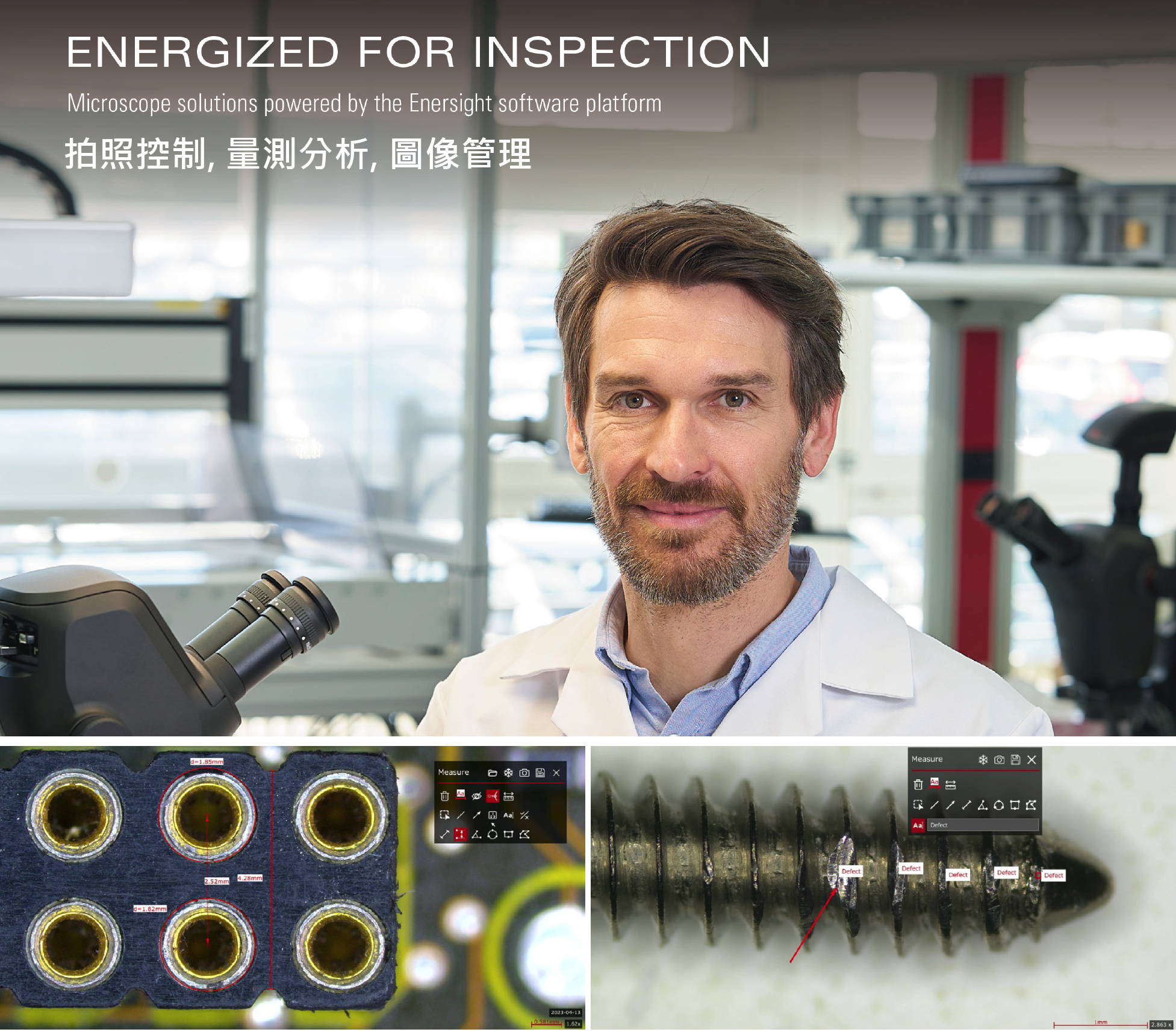 Leica Visoria M 一機具備全功能的觀察模式, 並可直接升級為數位型顯微鏡, 搭載 LEICA Enersight 量測分析軟體, 可以滿足各類型的量測應用.
