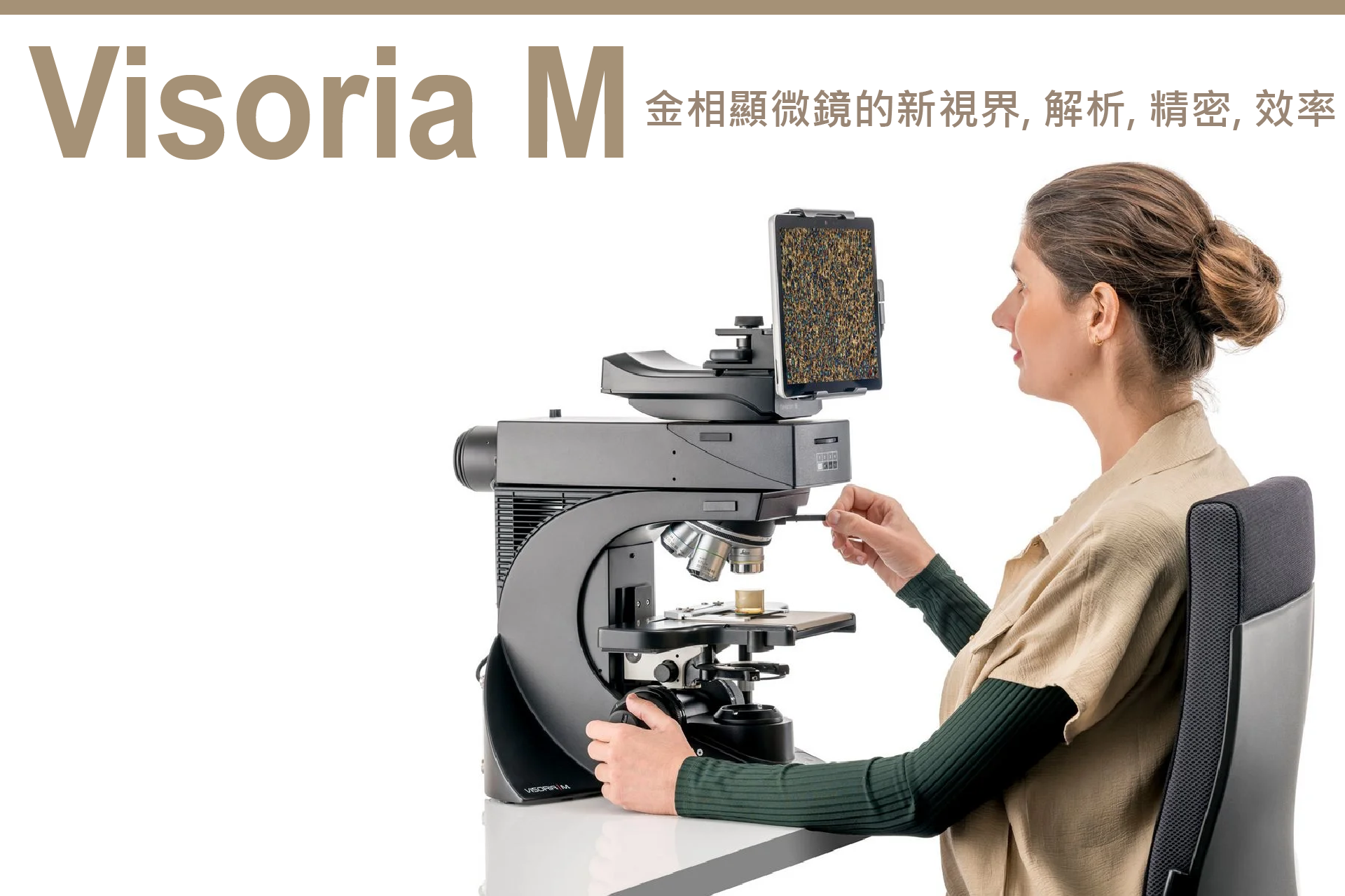 LEICA Visoria M 是智慧型的金相顯微鏡, 承襲優越的光學解析, 優化的光路與照相快速控制, 輔以最佳的人體工學設計, 讓使用者在最舒適的使用體感下, 創造出最高效率的結果., 最精密的量測分析結果.