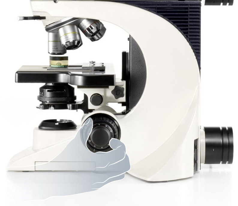 | Focusing | 2-gear focusing (coarse/fine with 1 μm micrometer scale with top focus stop) or 3-gear focusing (coarse/medium/ fine with 1 and 4 μm micrometer scales with top focus stop) Torque coarse focus, adjustable stage height stop |